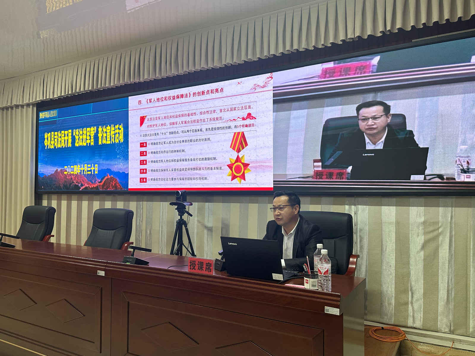 为深入贯彻落实习近平法治思想,推进法治宣传教育深入部队、深入官兵,切实维护好军人军属的合法权益,10月30日,贵州思州律师事务所主任杨国富律师受岑巩县司法局的邀请到县武装部开展普法宣传活动。 主讲人杨国富律师从《宪法》《民法典》《军人地位和权益保护法》入手,聚焦部队官兵法律服务需求,详细讲解了军人军属权益保障的具体法律规定,通过结合具体案例,如军人出行优先、交通事故、婚姻家庭、...